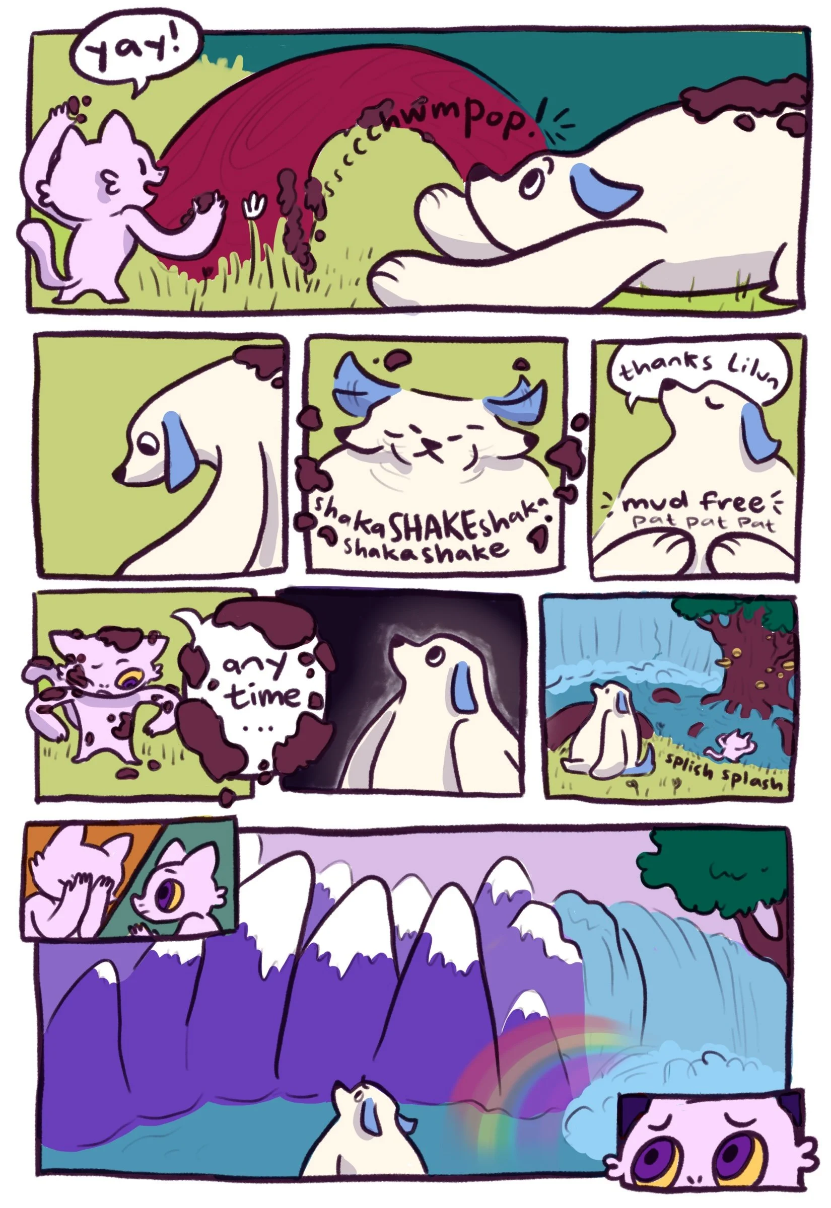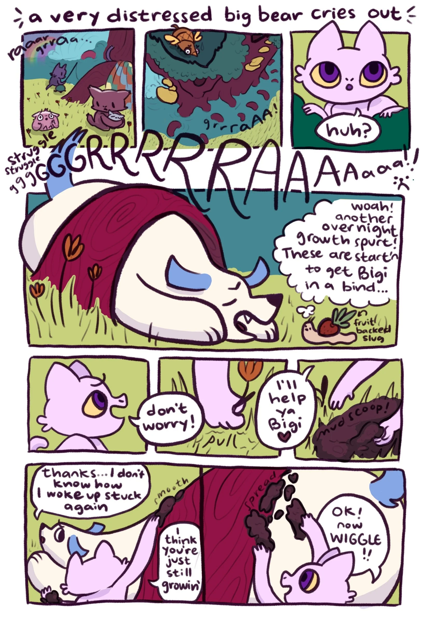 Above you’ll see the comic book in progress, which will detail Bigi and Lilun’s first adventures. The animation and the comic as well as our collective development work got its first debut In Merlino Gallery at CSULB in February of 2022.